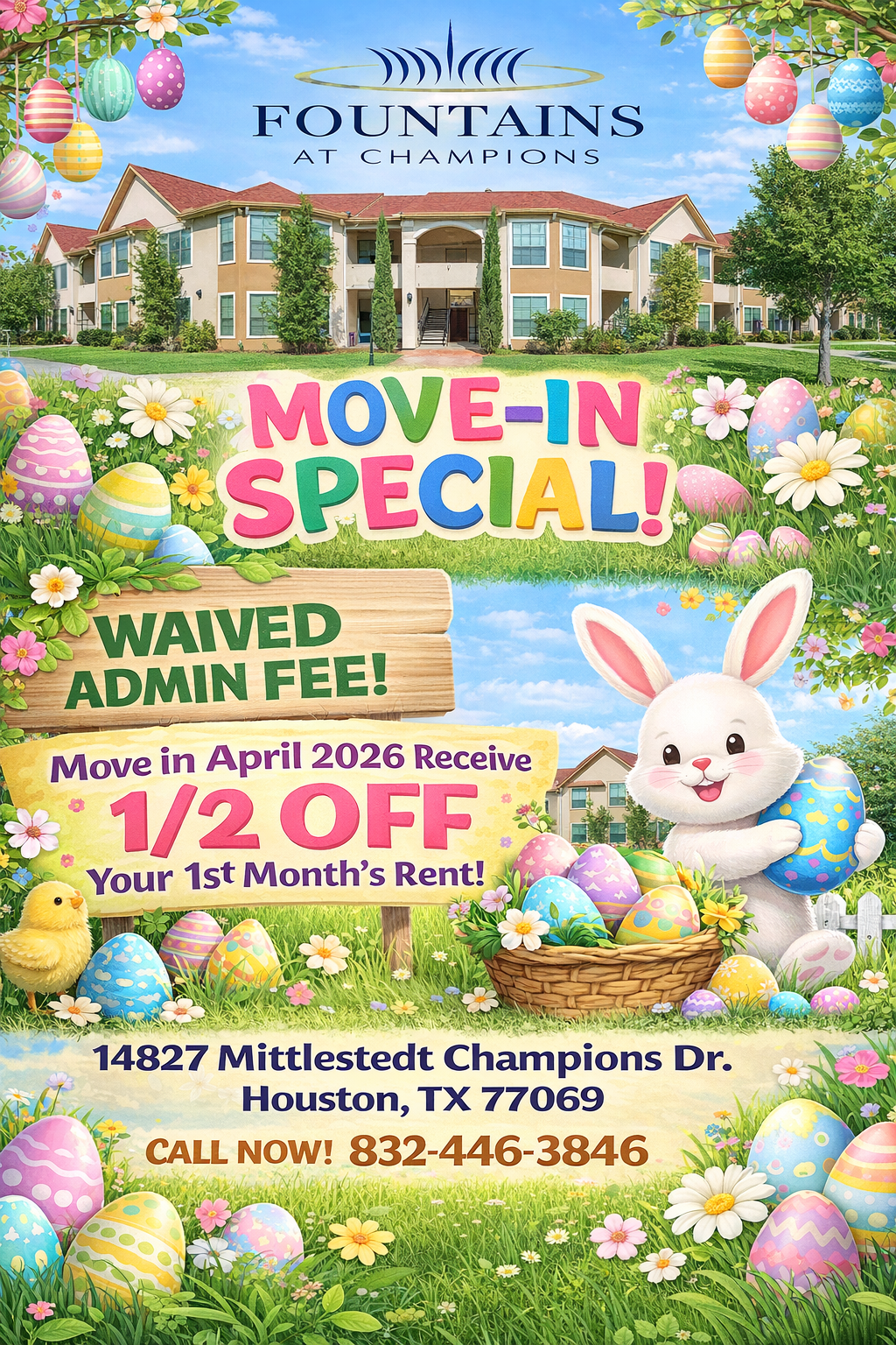 Don’t Miss Our Egg-stra Special April Deal!🥚 Waived Admin Fee, Move in by April 30,2026 receive HALF OFF your first months rent!